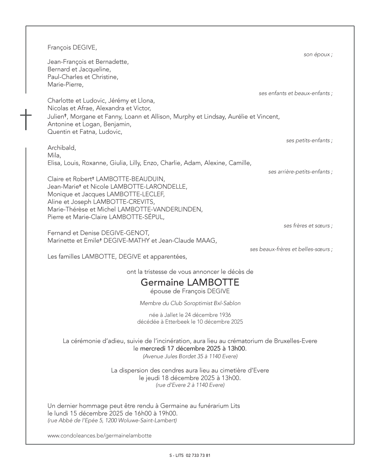 Madame Germaine LAMBOTTE